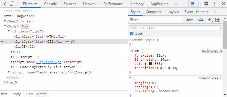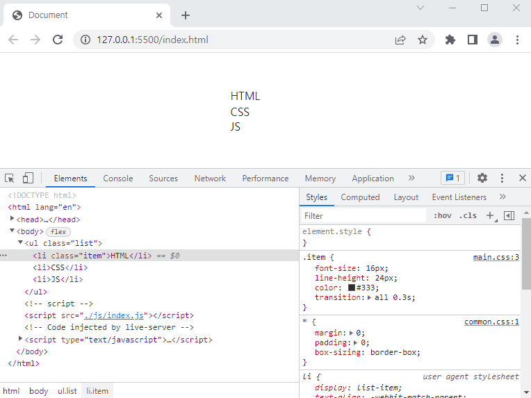 • 요소의 기존 CSS를 활성화 또는 비활성화 하기